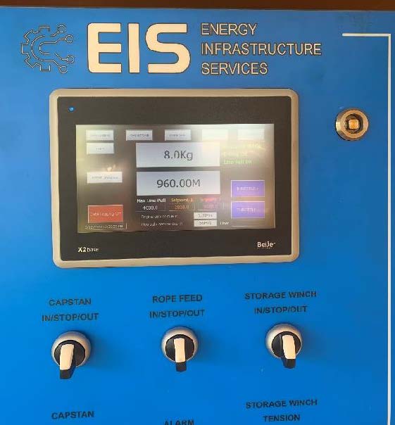 - Maximum cable pulling tension can be set from 250kg through to 6,000 kg with a warning alarm at 75%, 90% then shut down at 100% this eliminates the possibility of over pulling.